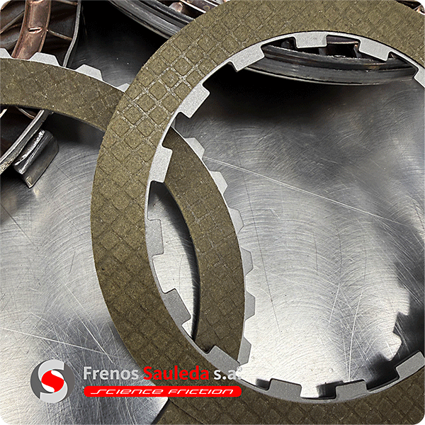 Мы гарантируем высокое качество ремонта, поэтому не используем повсеместно применяемые китайские материалы. Для своих работ мы выбираем лучшие фрикционы Frenos Sauleda из Испании, например, кевларовый неметаллический композитный материал с высокими показателями трения SF-BU. Это хорошая альтернатива для металлокерамики: он не абразивен по отношению к контр-материалам, не производит шума во время работы и обладает высоким сопротивлением к давлению. Материал высокоактивен и подходит для применения как в сухих условиях, так и в масляных ваннах (идеален для работ при температуре до 400 °C). Применяемая нами испанская технология, при которой вырезанный секторами фрикцион наклеивается на металлическое основание, позволяет заметно снизить стоимость ремонта, сохранив при этом его высокое качество.
