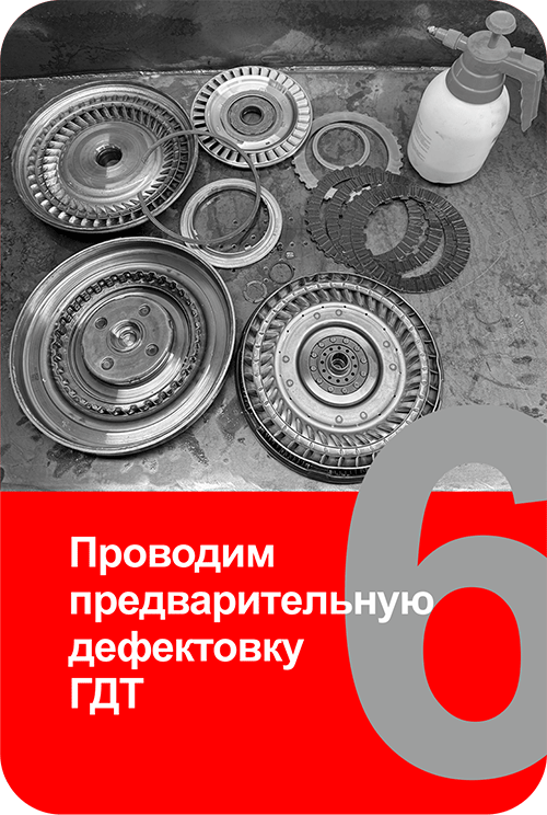 Однако специалисты Smagresta разработали передовое и более экономичное решение — мы восстанавливаем гидротрансформаторы, приводя их в состояние новых. Накопленные в нашей базе диагностические данные позволяют выполнять эти работы очень эффективно. Рабочий процесс выглядит так: корпус гидротрансформатора вскрывают и разбирают, производят дефектовку, затем тщательно и бережно очищают по отдельности каждый его компонент, заменяя новыми изношенные комплектующие. После чего гидротрансформатор снова собирают и сваривают его корпус, используя специально разработанные прецизионные инструменты для центровки. На последнем этапе работ проверяют его герметичность и точность размеров, а также проводят балансировку. Вся информация с показаниями о ремонте ГДТ храниться в нашей электронной базе, поэтому всегда можно найти и посмотреть историю восстановления вашей уникальной запчасти.