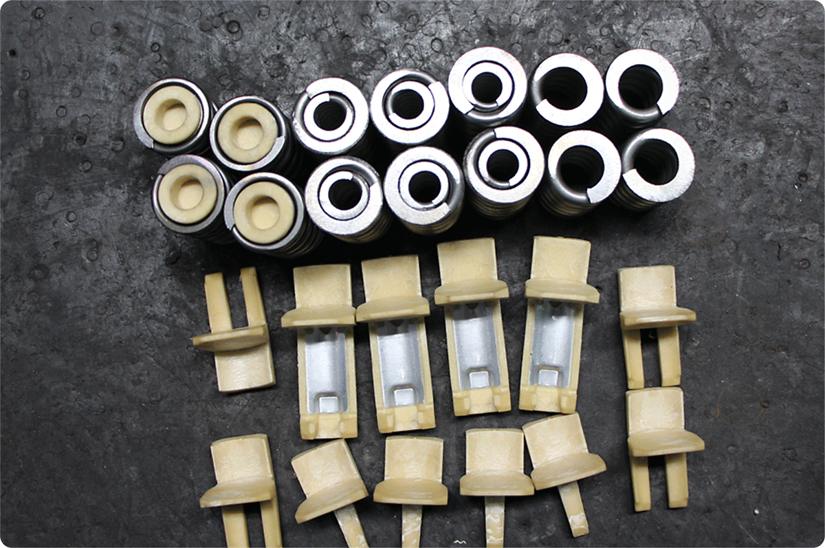 Новые пружины и пластиковые клипсы, привезенные нами из Европы, по своим техническим характеристикам – твердости пластика и закалке металла, и усилию на сжатие – полностью соответствуют заводским.