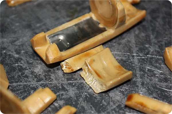Поломка демпферных пружин и пластиковых клипс на неразборной крышке.