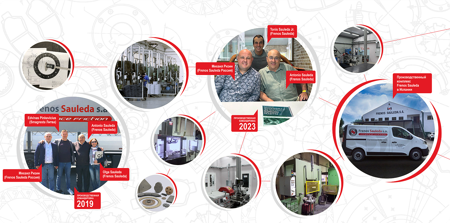 Все вопросы, связанные с ремонтом механизмов, использующих фрикционные материалы, успешно решает партнер компании Smagresta и одновременно наше специализированное подразделение Frenos Sauleda Russia. Начиная с 2016 года на его производственной площадке мы восстанавливаем фрикционные механизмы любой конструкции и сложности из собственных материалов. Это подразделение оснащено уникальным парком привезенных из Европы станков и оборудования. Мы гибко подходим к работе как с физическими и юридическими лицами, так и с крупными промышленными компаниями. Даем гарантию на выполняемые работы и поставляемые изделия. Вникаем в суть технических, инженерных проблем и предлагаем их конструктивные решения.